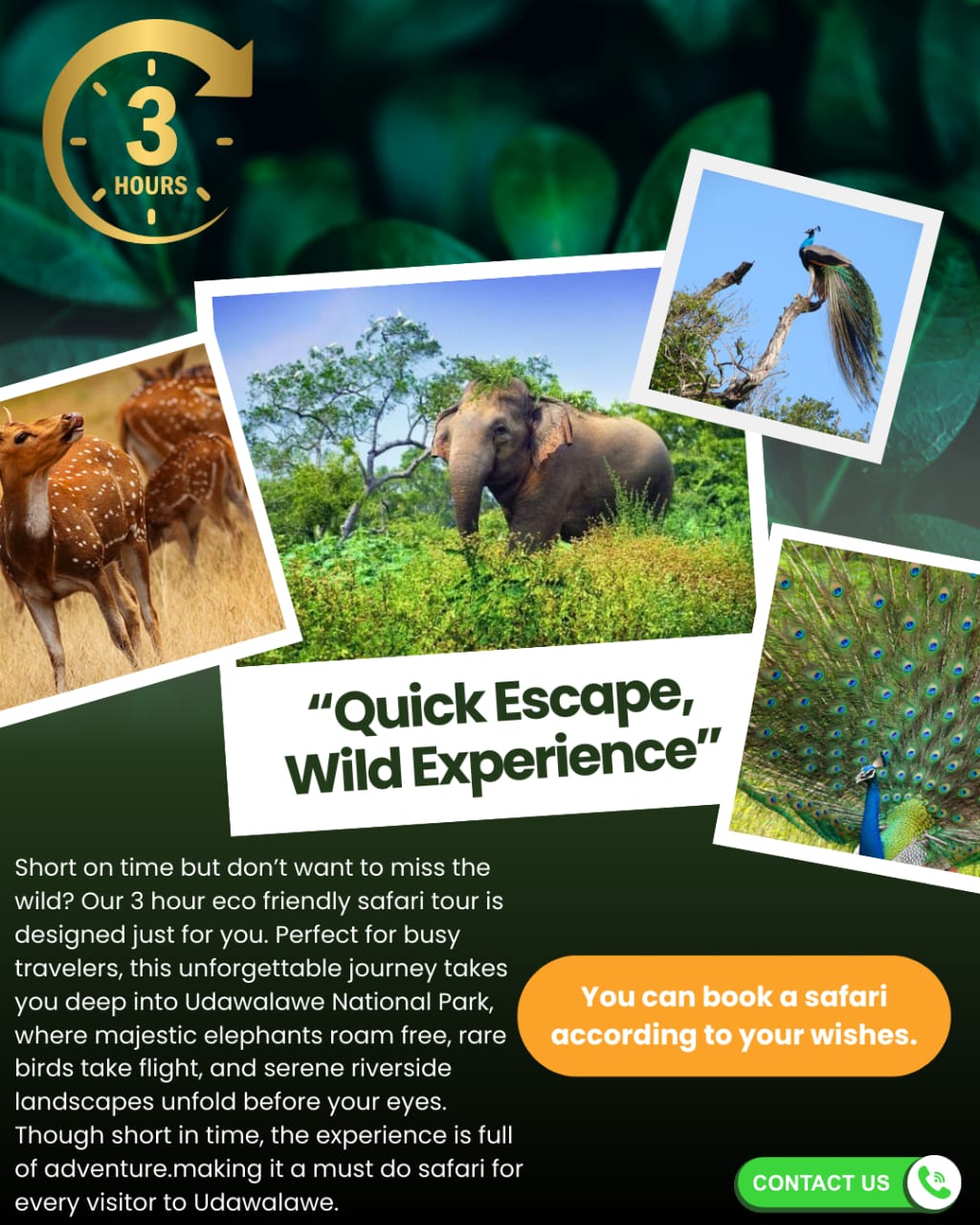 Located in the southern part of the island, Udawalawe National Park is world-famous for its elephant herds and breathtaking landscapes. From open grasslands to sparkling lakes, every safari here is an unforgettable journey into the wild.